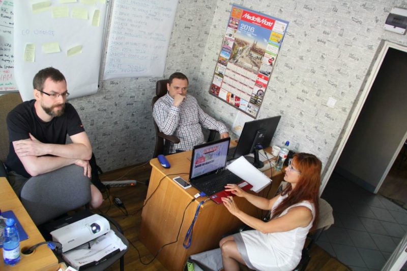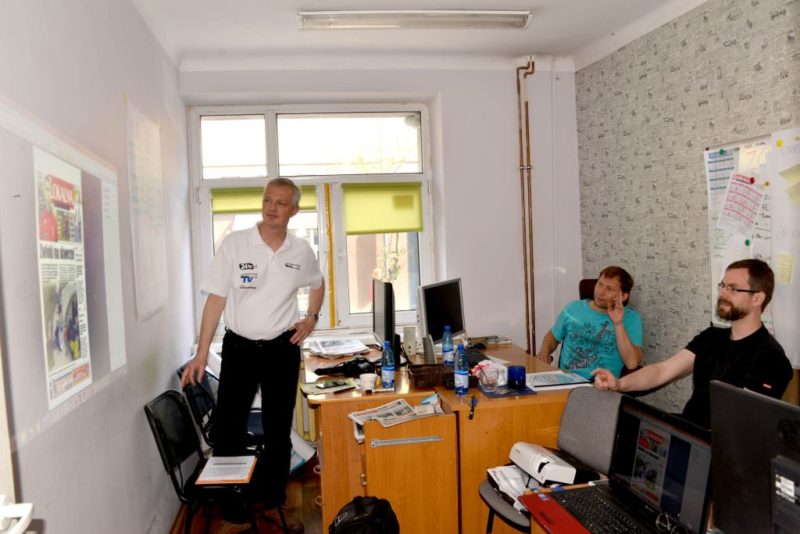 Ale nie chodzi o to, by zrobić prosty cykl wykładów. W końcu to szkolenie dla grafików. Program ułożyliśmy więc tak, by to najmniejsze szkolenie, w którym brało udział tylko trzech uczestników – okazało się jak najbardziej pomocne. W końcu nie chodzi o to, by warsztat zaliczyć, ale wnieść coś nowego do gazety. A z naszej strony nie wymądrzać się, ale wspólnie podejść do problemu.