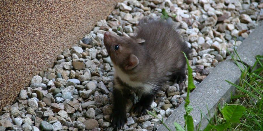 A tu chciałoby się wziąć ją na ręce, pogłaskać nie wiedząc jak ostre ząbki kryją się w tej słodkiej mordce. Przyglądam się, dziwię jej nieśmiałemu zachowaniu. Może już ktoś rzeczywiście zdążył ją nafaszerować jakąś trutką, bo porusza się wyjątkowo niezgrabnie nawet jak na kunę. A może jeszcze za mała? Powoli zbliża się wieczór, zwierzaczek gdzieś sobie idzie.
