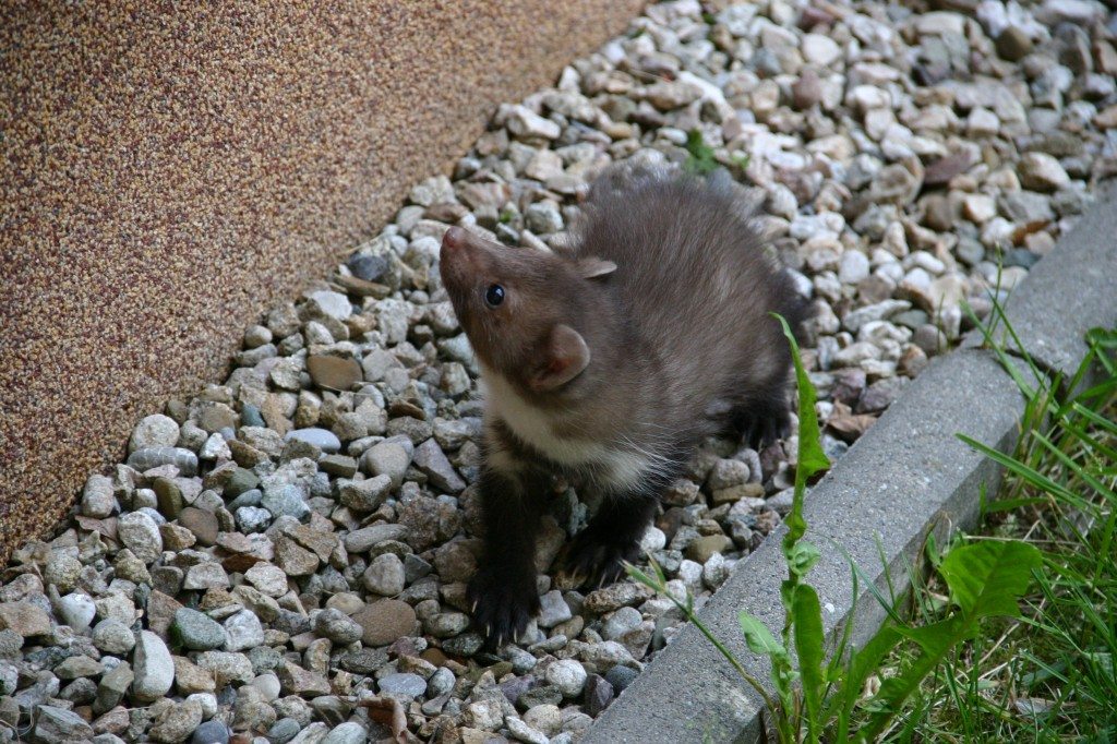 A tu chciałoby się wziąć ją na ręce, pogłaskać nie wiedząc jak ostre ząbki kryją się w tej słodkiej mordce. Przyglądam się, dziwię jej nieśmiałemu zachowaniu. Może już ktoś rzeczywiście zdążył ją nafaszerować jakąś trutką, bo porusza się wyjątkowo niezgrabnie nawet jak na kunę. A może jeszcze za mała? Powoli zbliża się wieczór, zwierzaczek gdzieś sobie idzie.